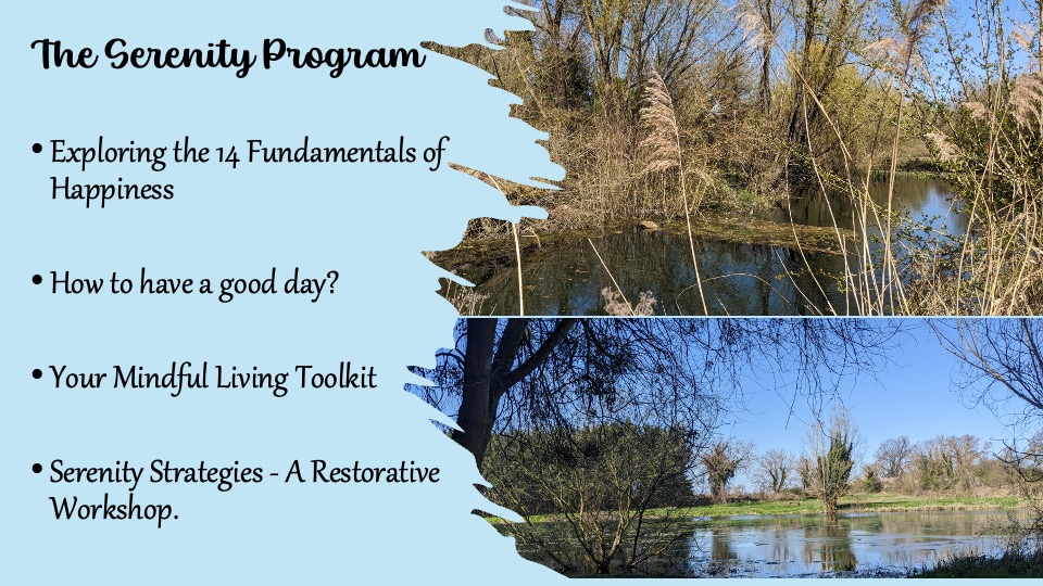 There are 4 courses making up the Serenity Program. These are offered via Teams or Zoom, with opportunities to network with other attendees.