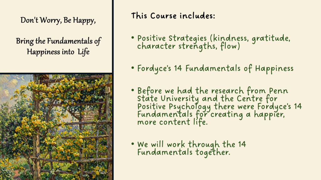 - Don’t Worry, Be Happy, Bringing the Fundamentals of Happiness into your Life